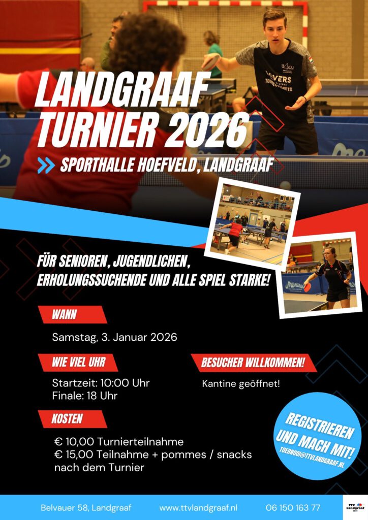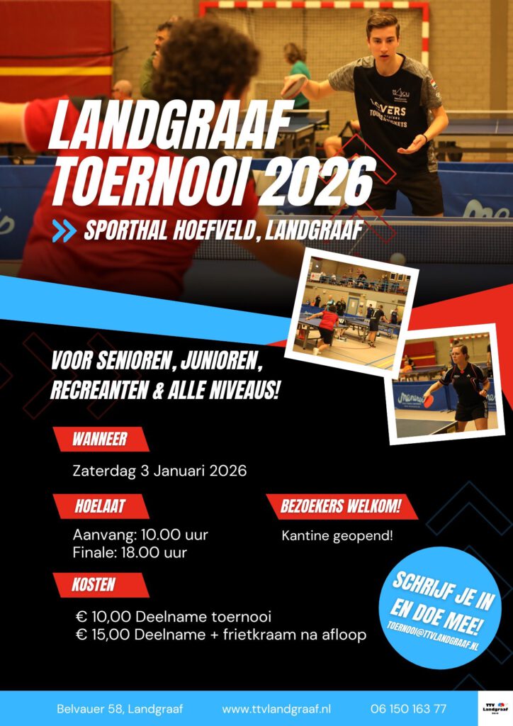 Op zaterdag 3 januari 2026 is weer het jaarlijkse Landgraaftoernooi.
